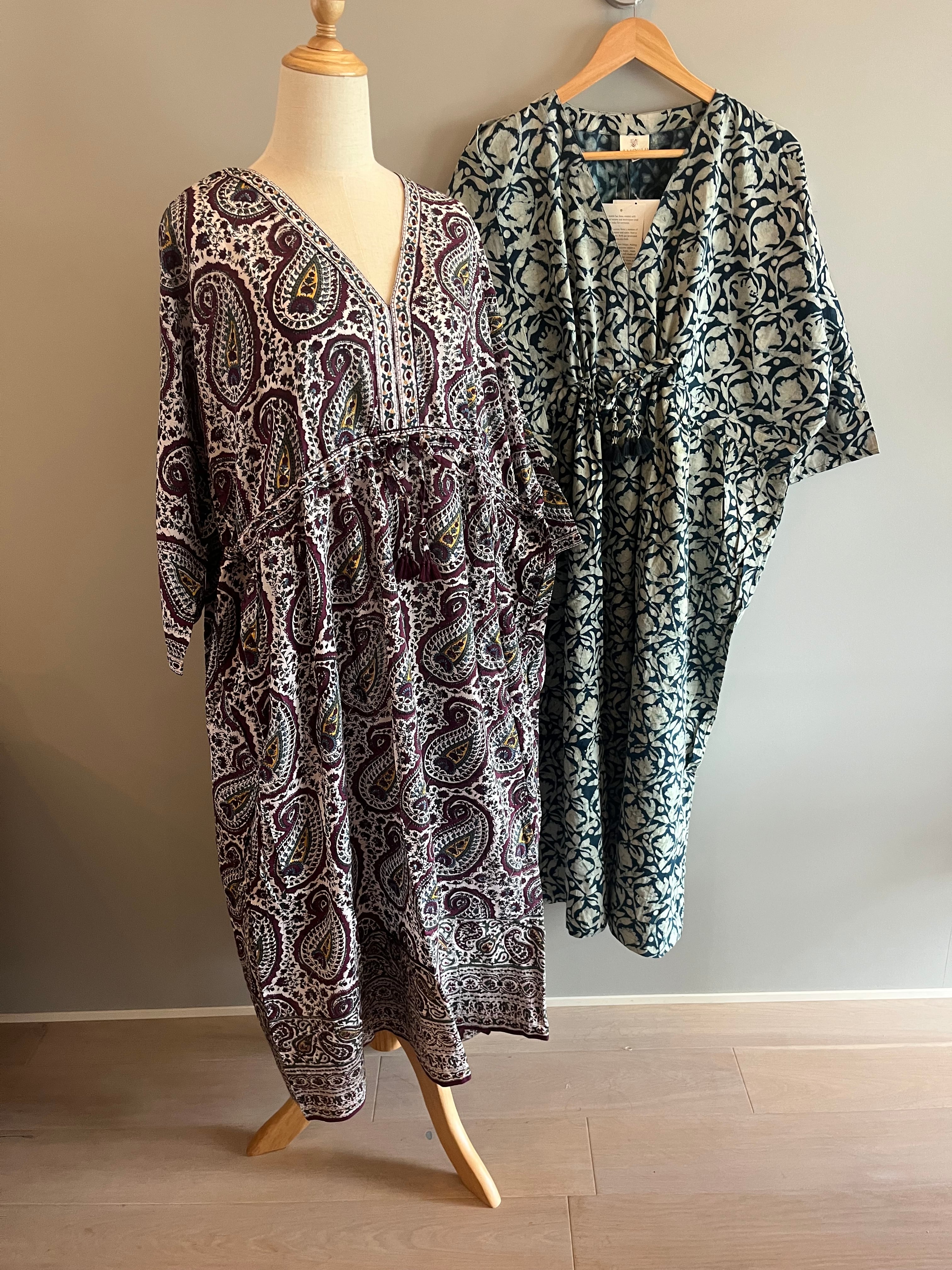 (フリーサイズ) 【伝統染め】ペイズリー柄ショートカフタンドレス