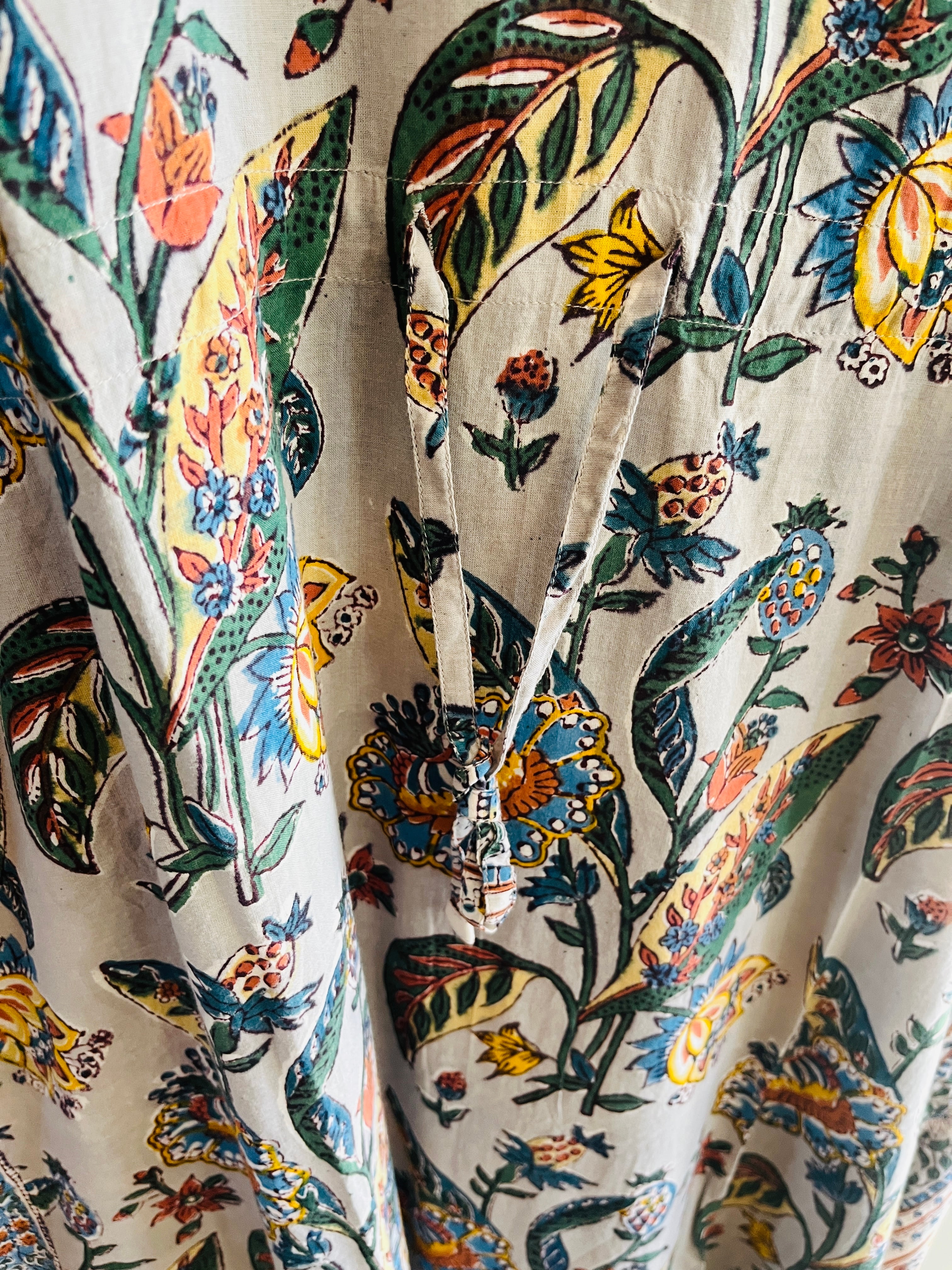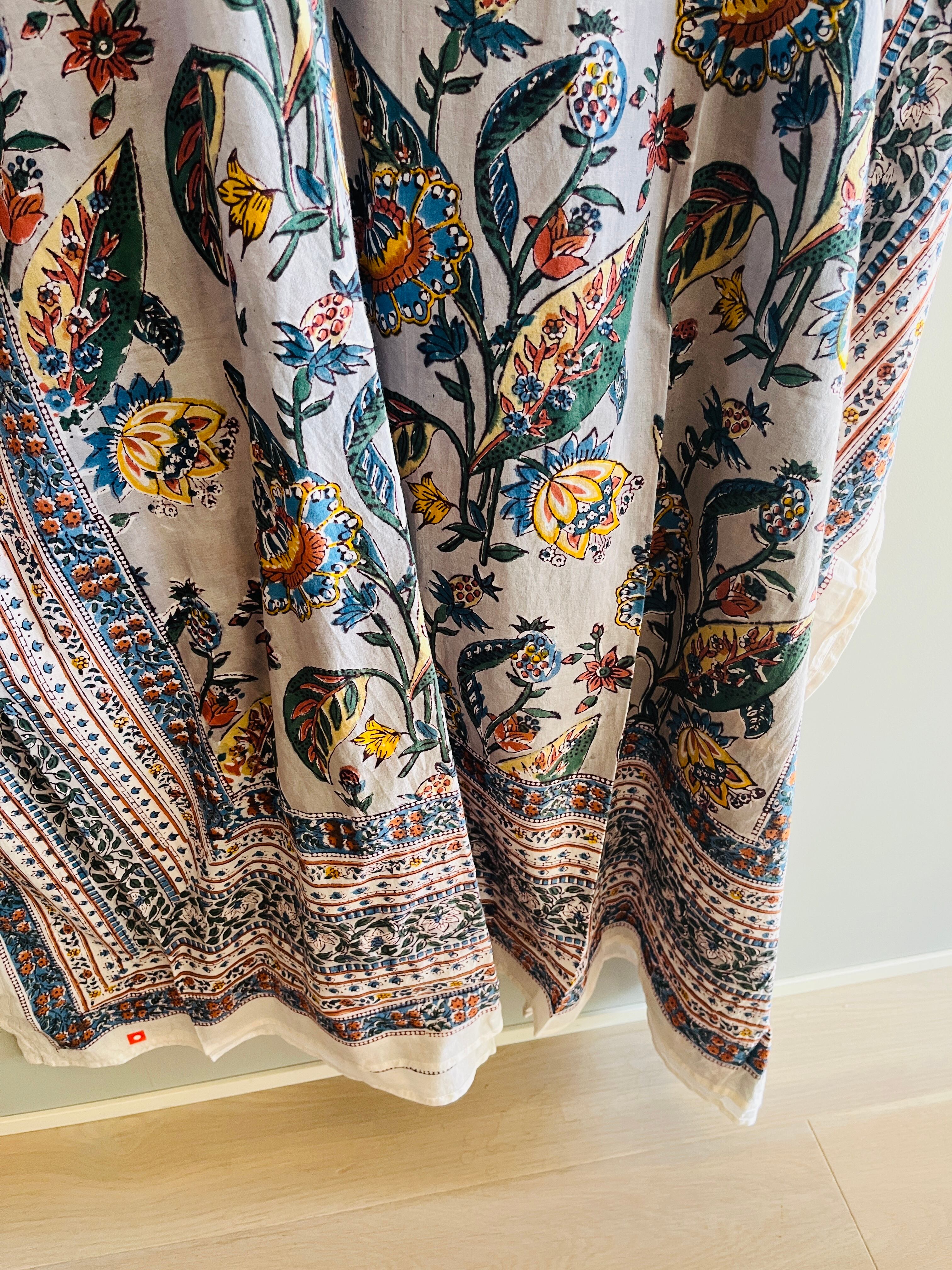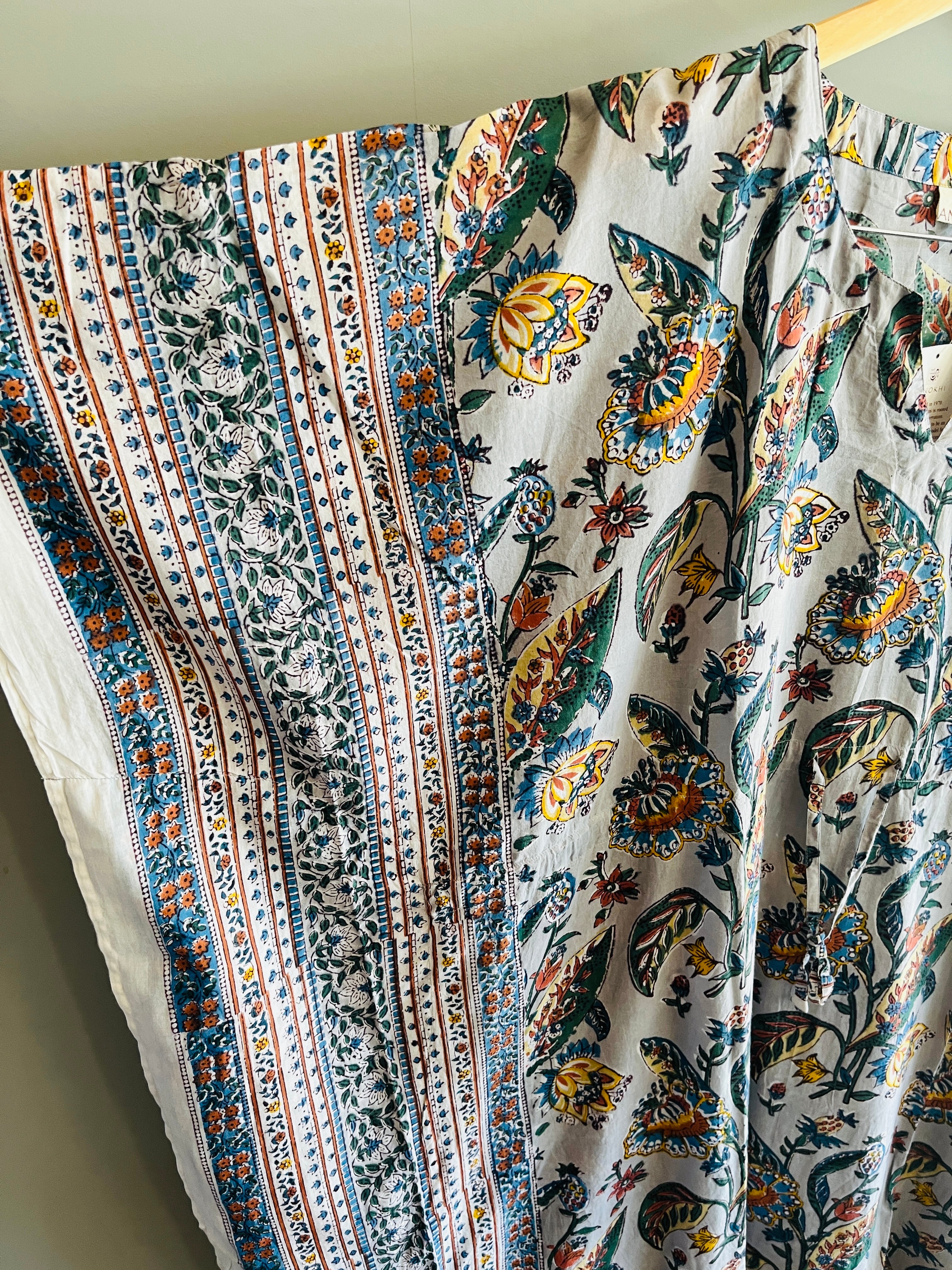 (フリーサイズ)ANOKHIロングカフタンドレス ライトグレーx大きなお花