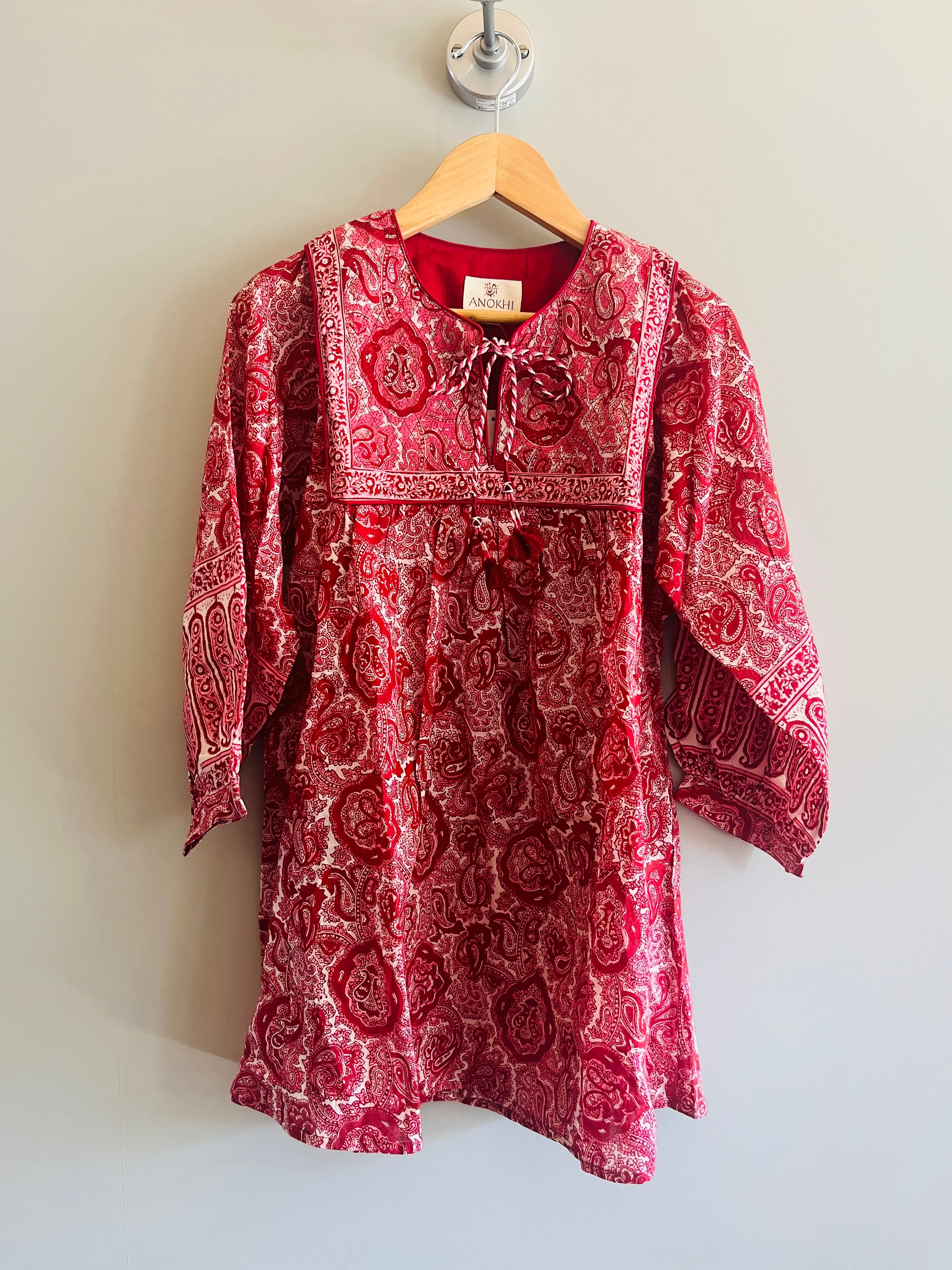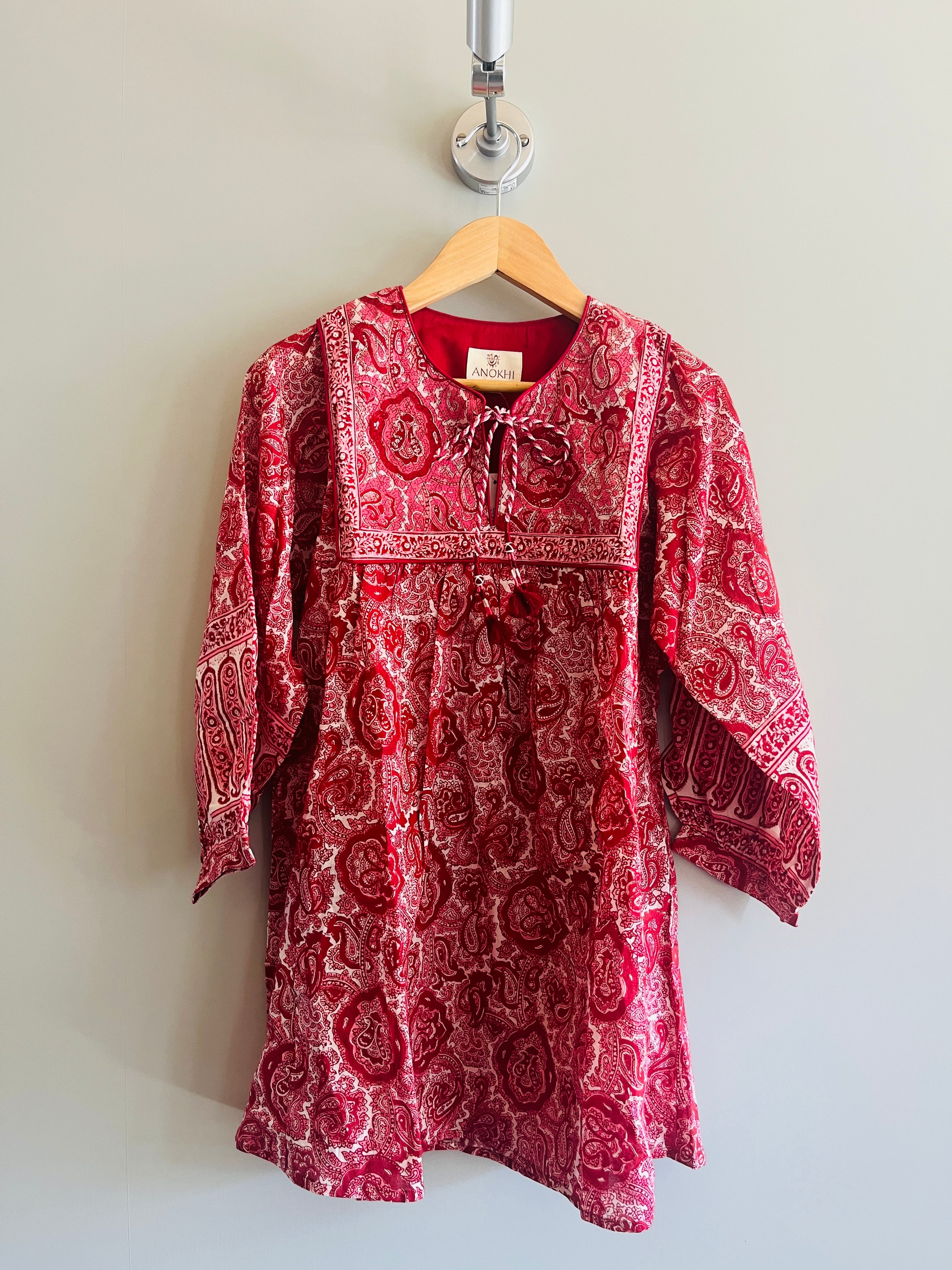 (XSサイズ) ANOKHIブロックプリント赤xトップス