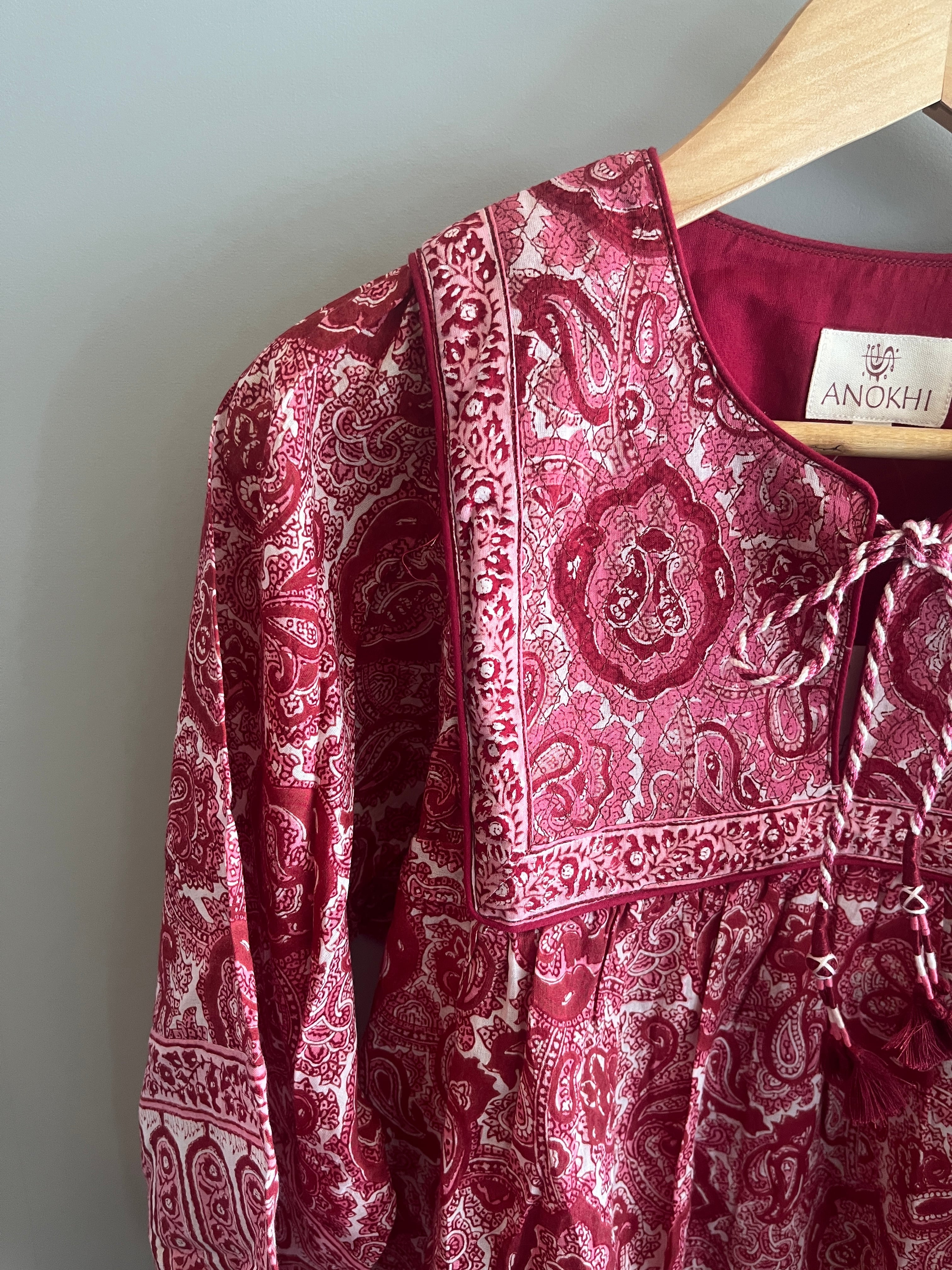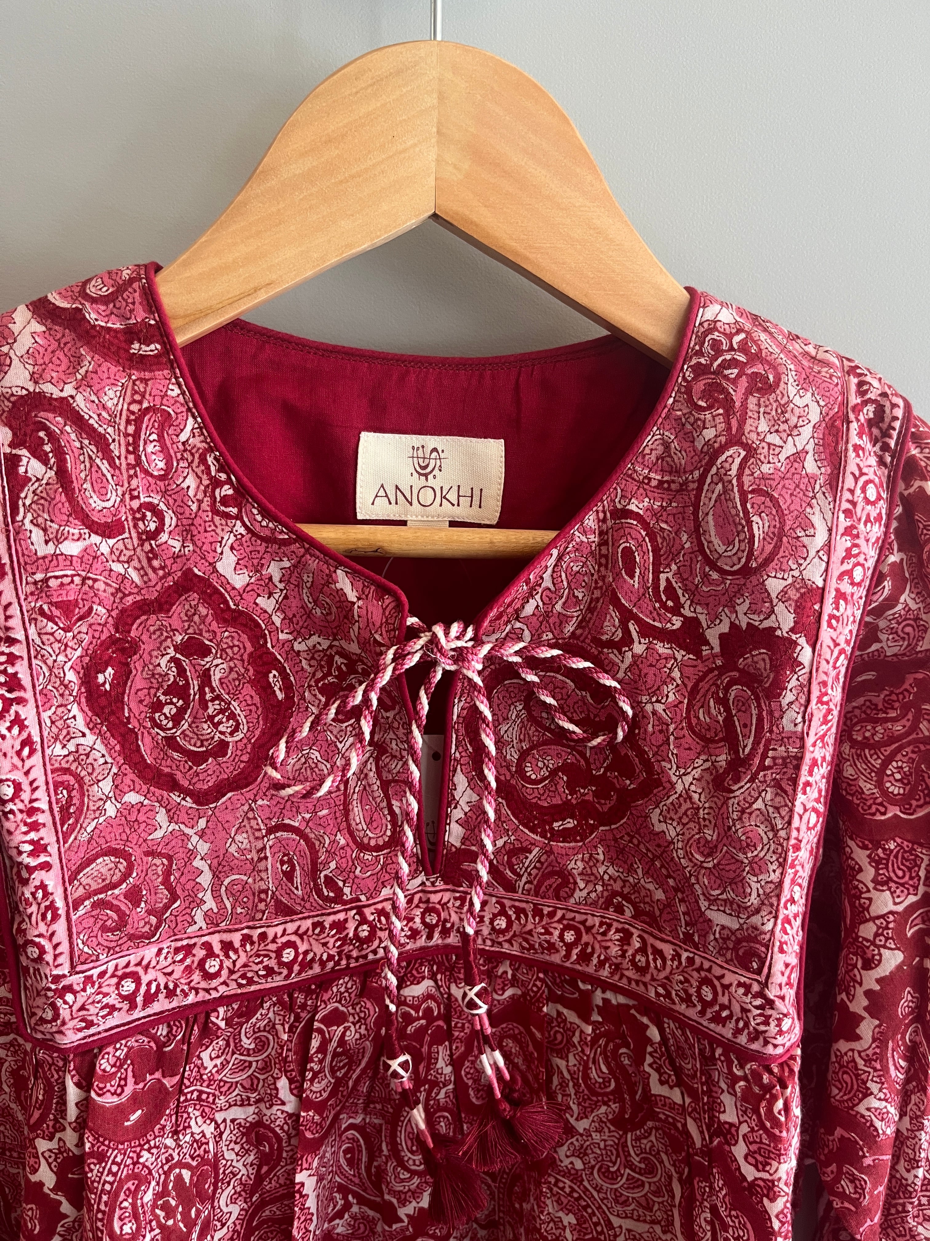 (Sサイズ) ANOKHIブロックプリント赤xトップス