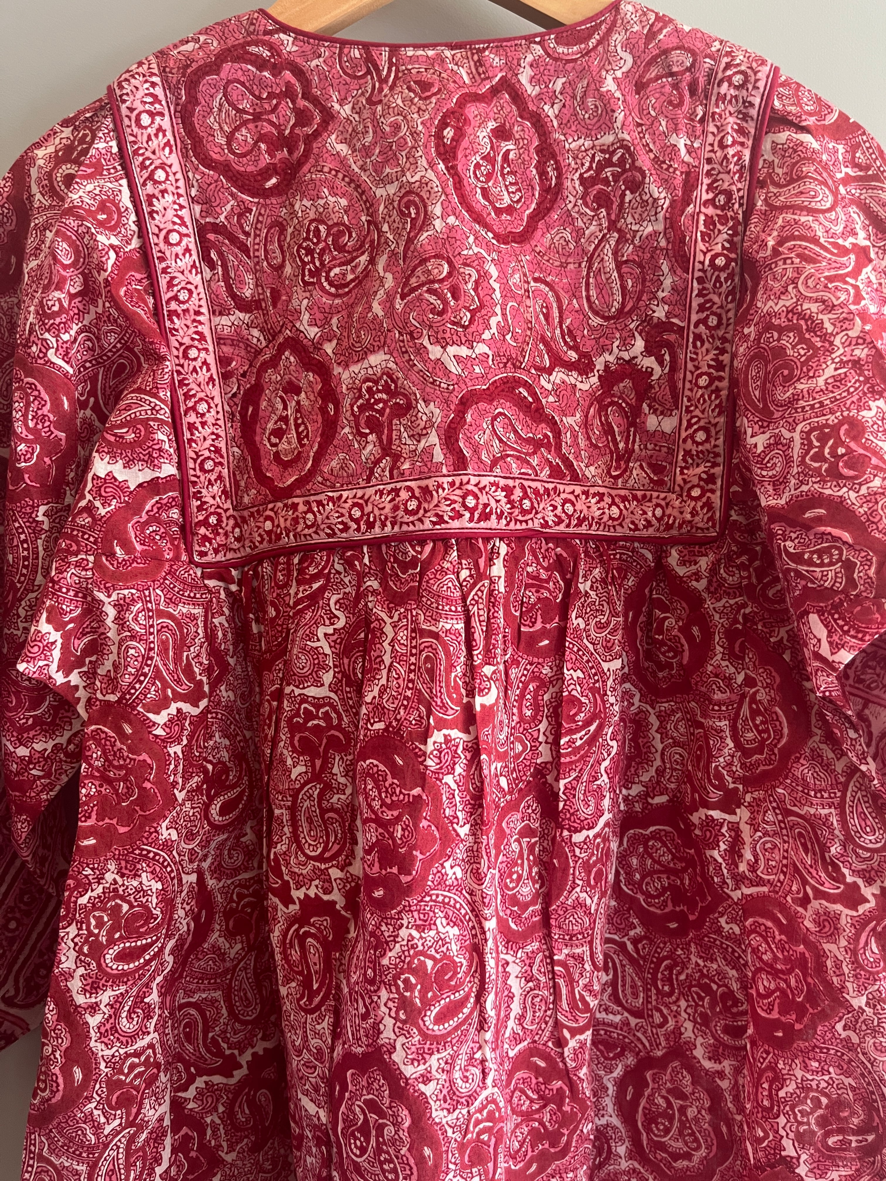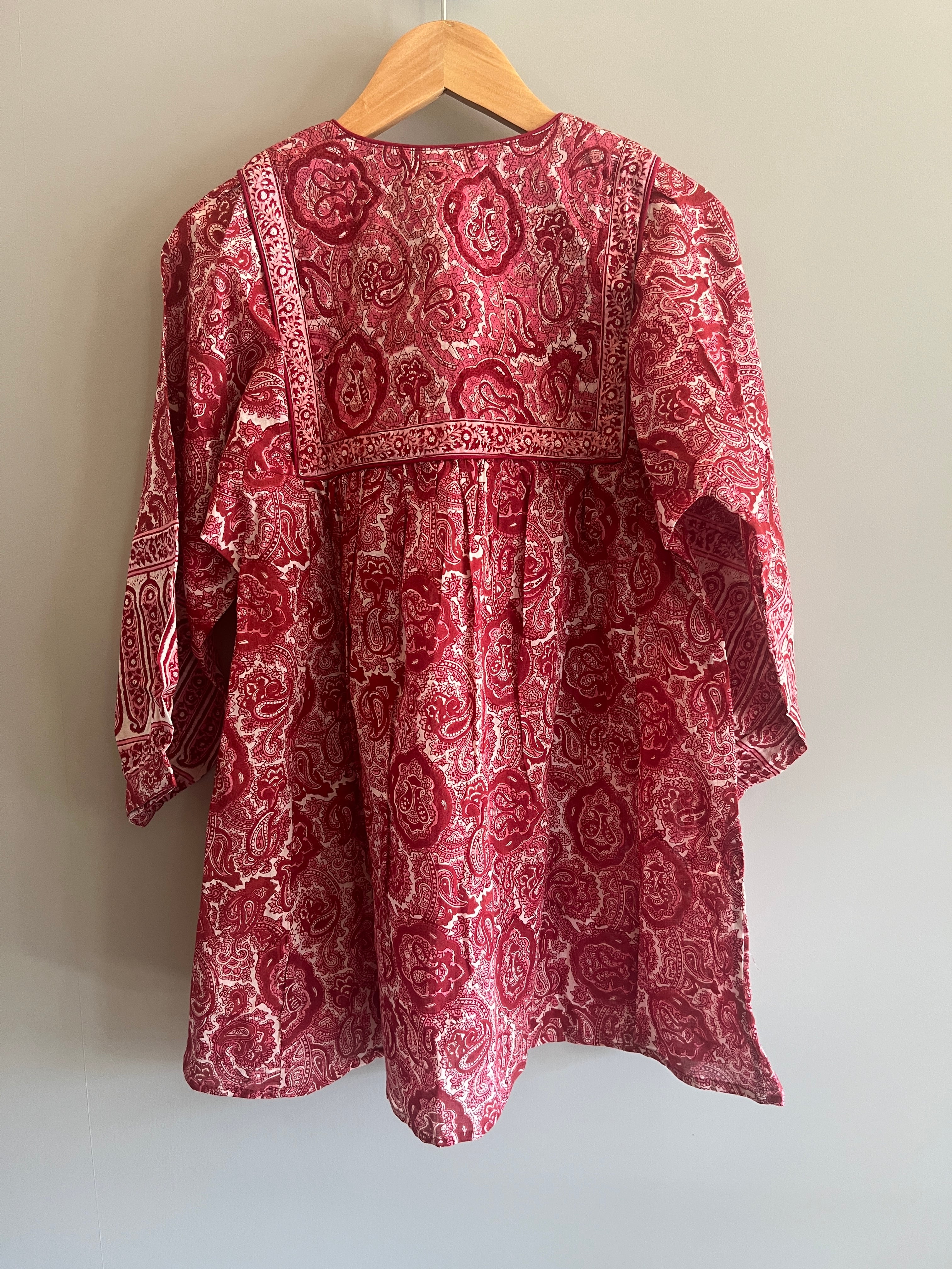 (Mサイズ) ANOKHIブロックプリント赤xトップス
