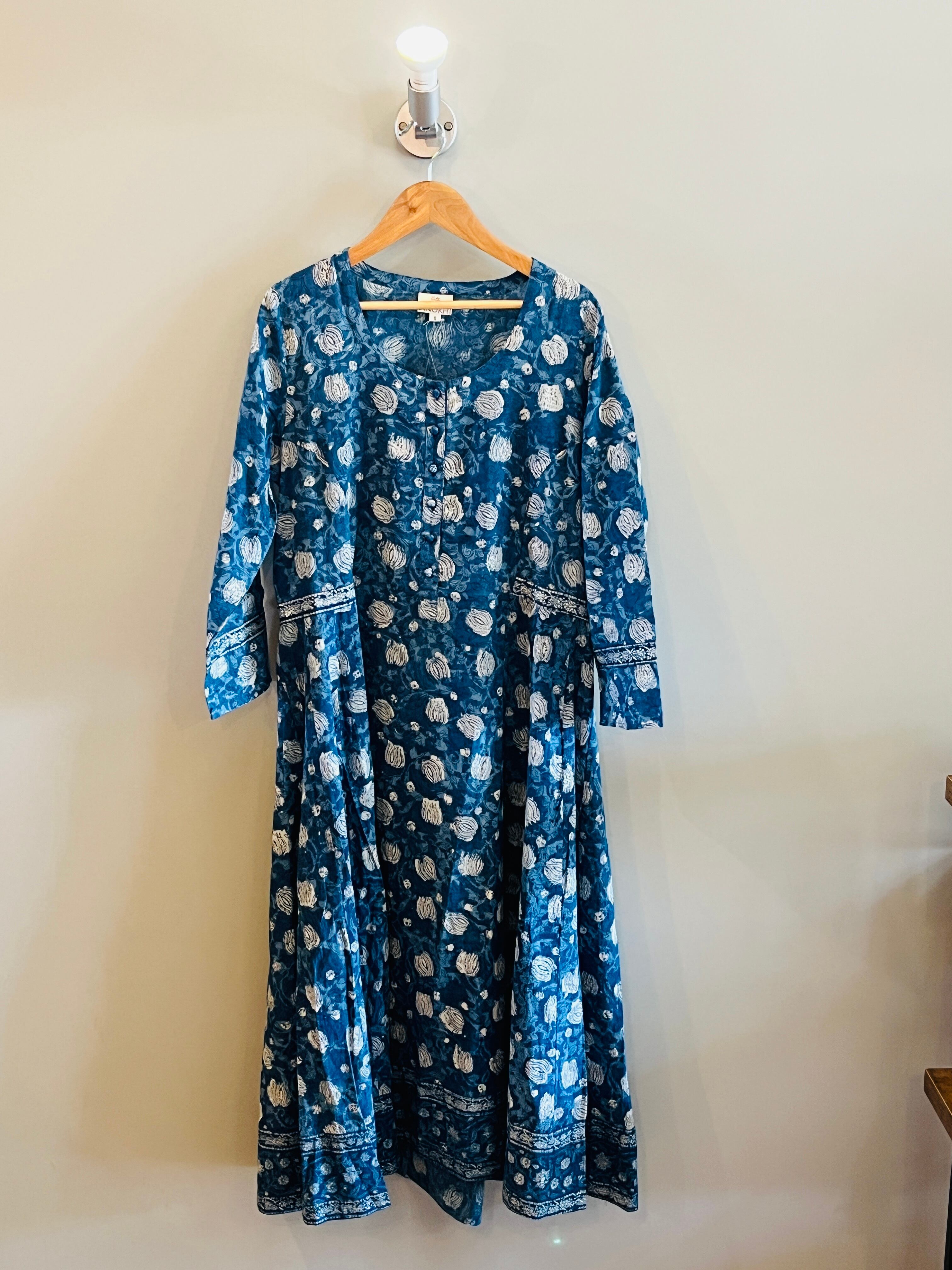 (Sサイズ)ANOKHI ブロックプリント インディゴxチューリップ