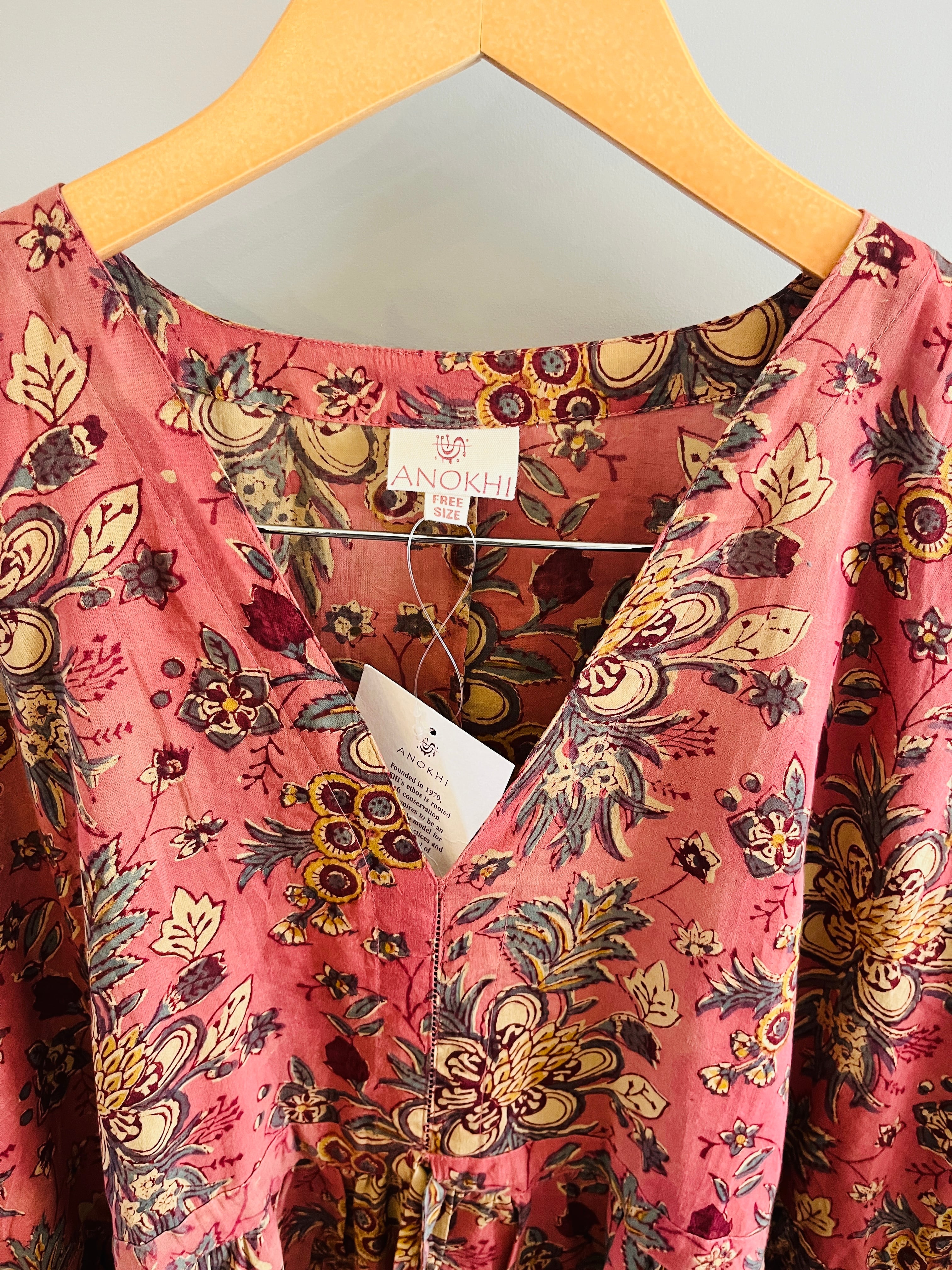 (フリーサイズ)ANOKHI ブロックプリントアンティークピンク ショートカフタン
